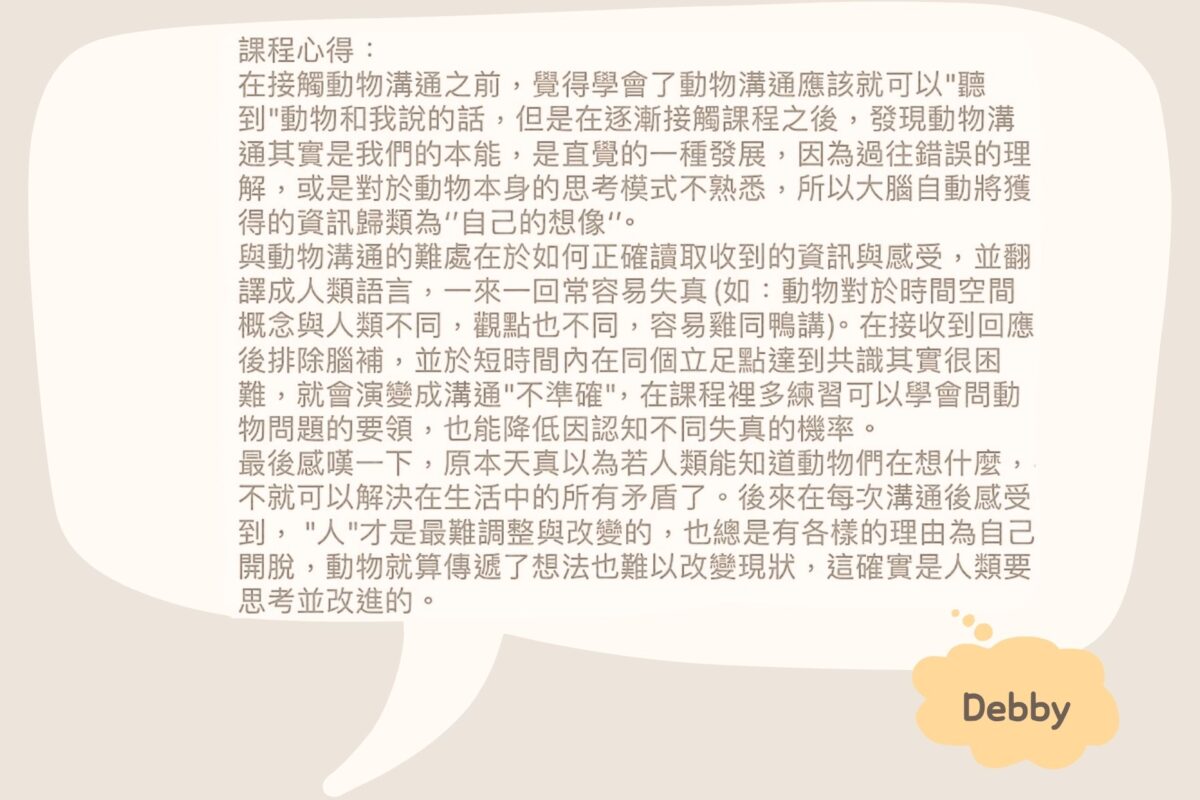 原本以為寵物溝通是「聽到聲音」但實際學習後才發現,重點在於如何判讀接收到的資訊透過練習與理解,也能慢慢降低失真、提升準確度